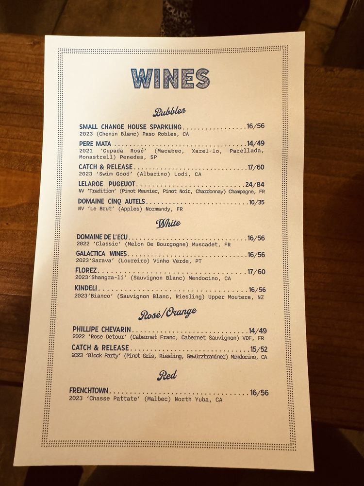 The ambiance is casual yet inviting, with cozy indoor bar seating and an outdoor patio perfect for enjoying a glass of Small Change House Sparkling ($16) alongside mouthwatering dishes. Patrons rave about the raw varieties, including Kumamoto and Beau Soleil, celebrated for their perfect shucking and taste.